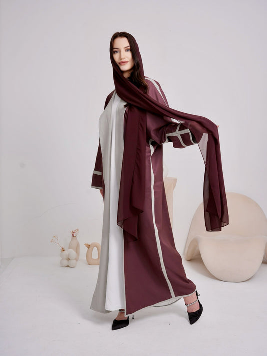 Lina's Burgundy and Grey Abaya